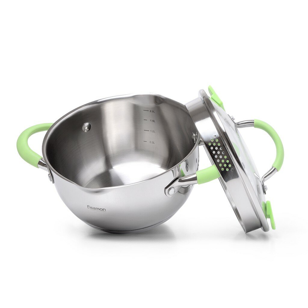 Компания FISSMAN ценит своих покупателей и относится к качеству своей продукции с особым вниманием. Посуда серии CHARLOTTE сделана из самой безопасной высококачественной нержавеющей стали марки 18/10 (INOX304), обладает жаростойкостью и коррозийной прочностью, очень легка в уходе. Многослойное капсульное дно обеспечивает равномерный нагрев и распределение тепла благодаря алюминиевой прослойке, раскрывая вкусовые качества блюда и сохраняя все полезные свойства продуктов, а индукционный слой делает посуду универсальной для всех типов плит. • Стальной корпус 18/10 (INOX304) (высококачественная нержавеющая сталь) • Многослойное индукционное дно (для всех типов плит, высокая теплопроводность) • Мерная шкала (для контроля количества жидкости) • Прозрачная ударопрочная стеклянная крышка с паровыпуском позволяет наблюдать за готовностью пищи, не открывая посуду, тем самым, исключая попадания брызг на кожу и одежду • Ручки из нержавеющей стали на заклёпках с силиконовой оболочкой (не нагреваются, не скользят) • Силиконовые прихватки (для удобства слива) • Носик для слива (удобно сливать лишнюю жидкость) • Отверстия для слива • Изогнутая форма - увеличение объема с сохранением небольшого диаметра и удобной высоты • Одобрено профессионалами • Безопасно для здоровья и окружающей средыПриобретая продукцию компании FISSMAN, Вы делаете выбор в пользу качества и безопасности посуды, в которой Вы будете готовить для себя и Вашей семьи. Яркий, смелый дизайн вдохновит Вас на создание новых блюд и, несомненно, станет изюминкой Вашей кухни.