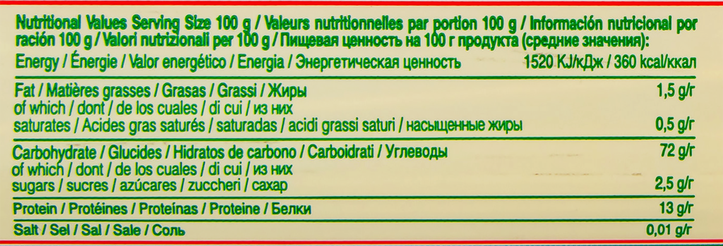 | Энергетическая ценность (ккал на 100 г) | 359 |