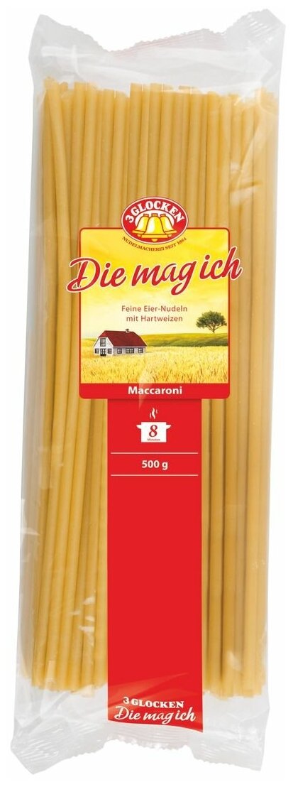 Спагетти бренда 3 Glocken - натуральные макаронные изделия немецкого производства, изготовленные из муки твердых сортов пшеницы (дурум) с добавлением яиц высшего качества и родниковой воды. Макароны быстро варятся, сохраняя форму и красивый золотистый цвет. Спагетти идеально подходят для приготовления разных паст, в качестве гарнира, а также могут выступать в качестве самостоятельного блюда с добавлением различных соусов и сыра. Чтобы получить идеальный вкус, следует варить спагетти в соответствии с рекомендациями, указанными на упаковке. Для удобства хранения открытой пачки, упаковка оснащена клейкой лентой.