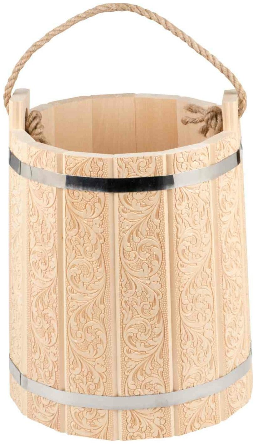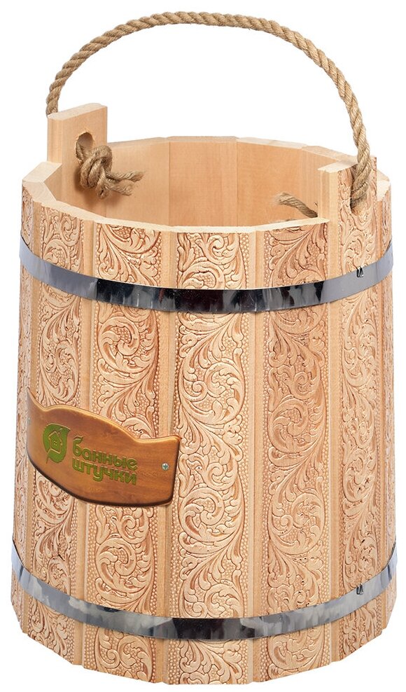 Русская баня – это целая церемония. А какая церемония без традиционных аксессуаров? Ведро от компании Банные штучки выполнено из прочной и влагостойкой древесины. Оно очень лёгкое, удобное и практичное. А его красивый резной орнамент добавит бане колоритности.