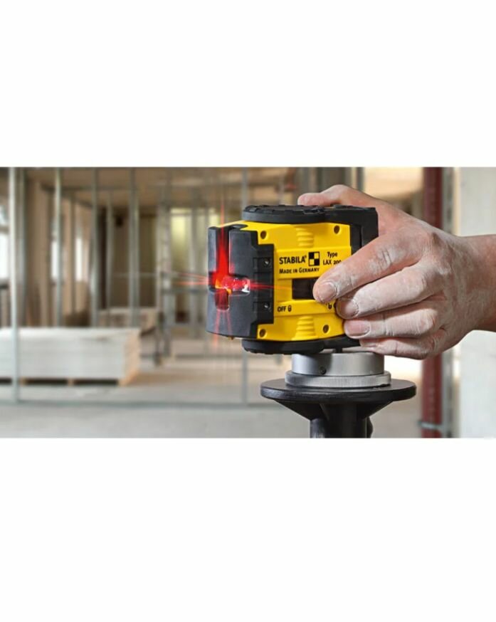 Уникальный лазерный построитель плоскостей Stabila имеет, инновационный корпус с возможностью поворота на 360 °, магнитное крепление, яркие и четкие горизонтальные и вертикальные линии, возможность работы с приемником.