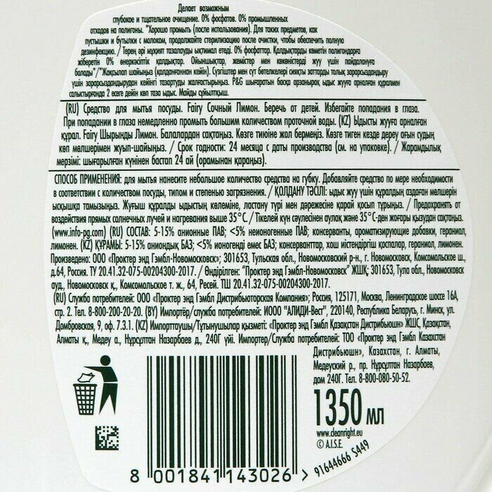 - Fairy содержит 100% биоразлагаемые компоненты