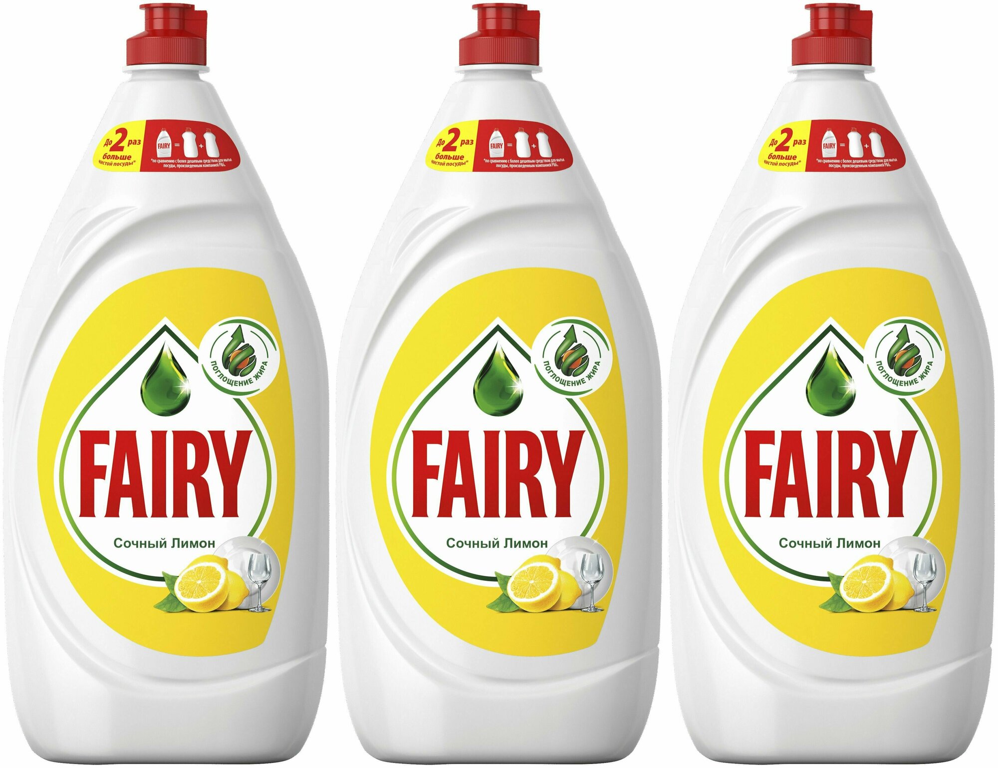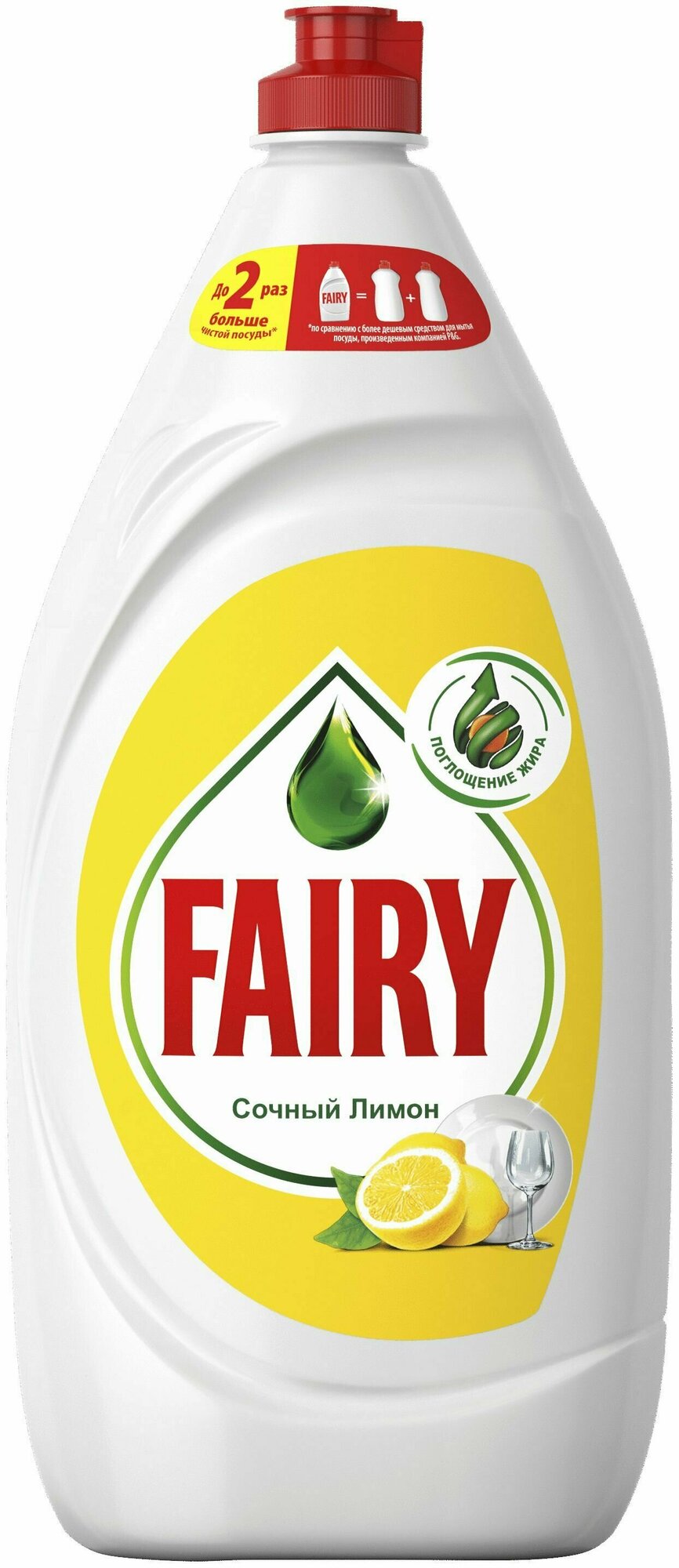 - Fairy "Сочный Лимон" отмывает до 2х раз больше посуды