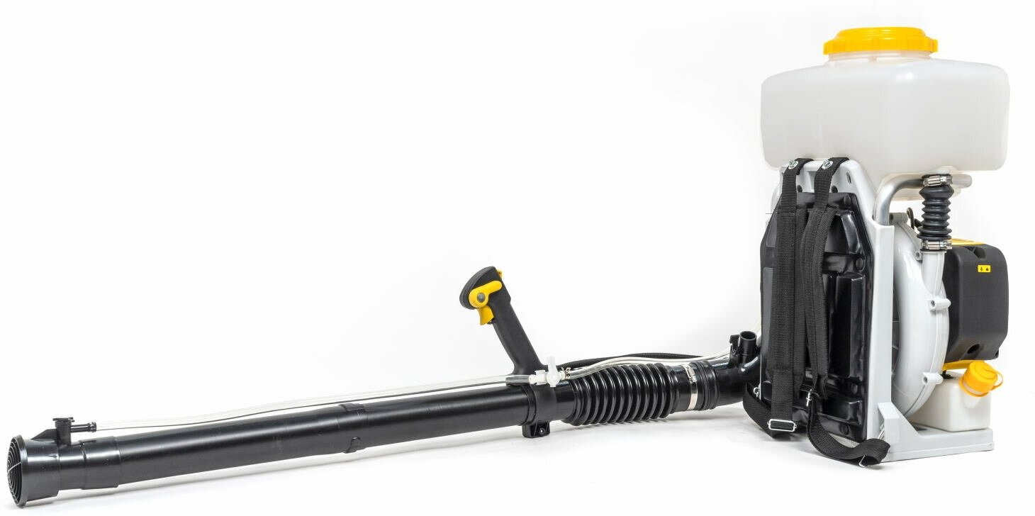 Опрыскиватель оснащен 2-тактным двигателем мощностью 3.4 л.с. Двигатель заправляется топливной смесью, которая состоит из бензина марки не ниже АИ-90 и масла для 2-тактных двигателей в соотношении 50:1. Топливный бак емкостью 1.5 литра выполнен из прозрачного материала, поэтому контролировать уровень топлива очень легко. Двигатель обеспечивает широкий, до 15 метров радиус распыления, что позволяет за короткий промежуток времени обработать большую территорию. Скорость распыления оставляет 182 л/час.