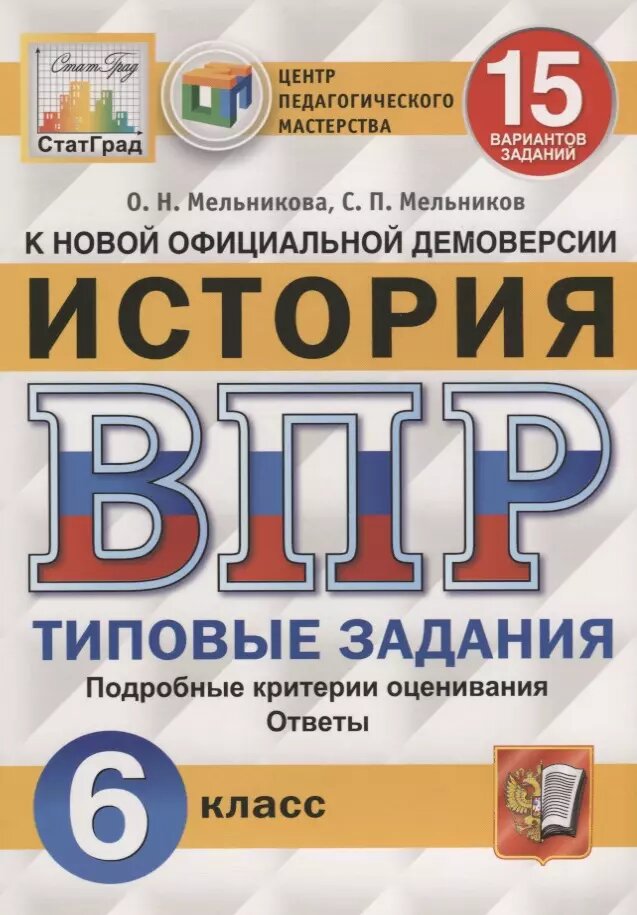 ВПР ЦПМ. История. 6 класс. 15 вариантов. Типовые задания. (Мельникова Ольга Николаевна; Мельников Сергей Павлович); Экзамен, 2019