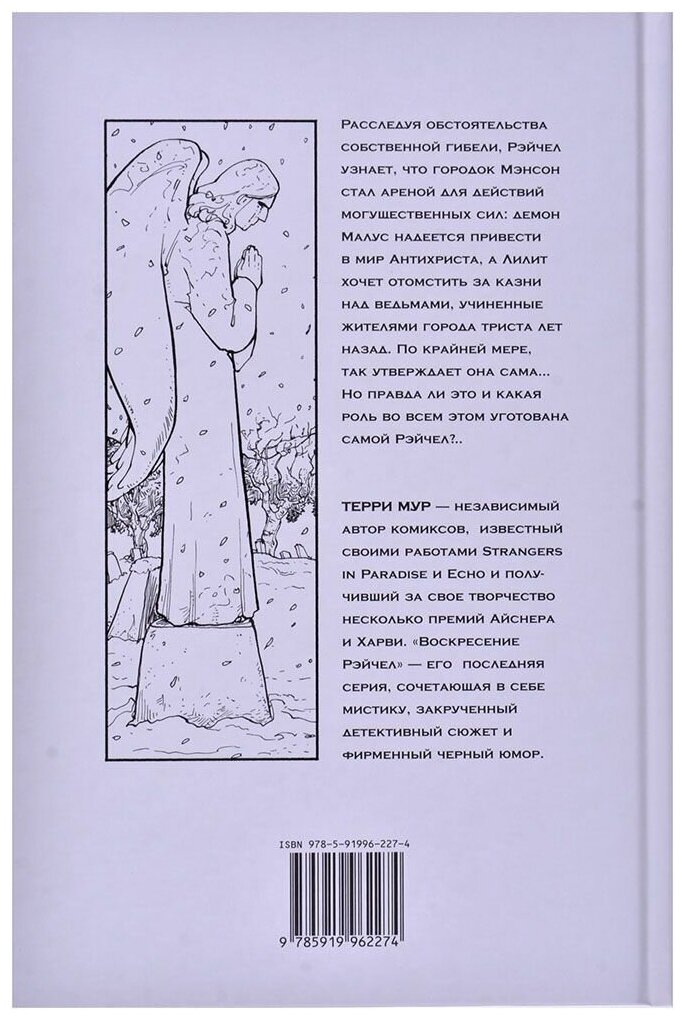 Серия Воскресение Рэйчел внезапно стала одной из самых любимых комикс серии за последнее время. Меланхоличная зимняя атмосфера, запутанная история с религиозным посылом и философии смерти, обонятельные персонажи с отличным чёрным юмором не уходящим в фарс,потрясающий чёрно белый художественный стиль со своими уникальными элементами который даже смотрится органичнее и качественнее чем например в ходячих мертвецах. А так же это просто чисто авторский проект Терри Мура который передаёт историю как её видит и делает с ней то что хочет. К жанру можно отнести как детективный хоррор триллер с приправой ироничного чёрного юмора, такая вещь прям необычна среди множества выходящих комиксов и очень качественна. Да в нём не так много действия, он не будет постоянно подкидывать жестокие сцены для отвращения или какие то драки для зрелища, данная новелла больше понравится тем кто любит что то очень атмосферное и с глубоким сюжетом который требует размышления. Стоит сказать спасибо XL media что выпускают супер качественно такой не мейнстримовый проект, надеюсь его они выпустят полностью. Ну и лабиринту за быстрый выход в продажу с отличной ценой)