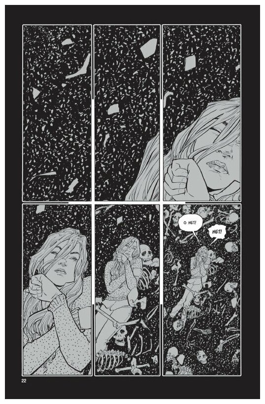 Рисунок комикса вновь очень аккуратный и реалистичный, с глубокой проработкой теней, красивой обрисовкой лиц, что делает чтение еще более приятным времяпрепровождением. Радует большое внимание к деталям. Например, когда в мороз только изо рта Рэйчел не идет пар. Для некоторых отсутствие колориста может стать минусом, но не все с этим согласятся. Особенно хорошо реалистичность работает на моменты жути. Одно дело просто нарисовать, как змея забирается в рот трупа девушки. Другое дело реалистично и с деталями нарисовать то, как змея забирается в рот трупа девушки. -