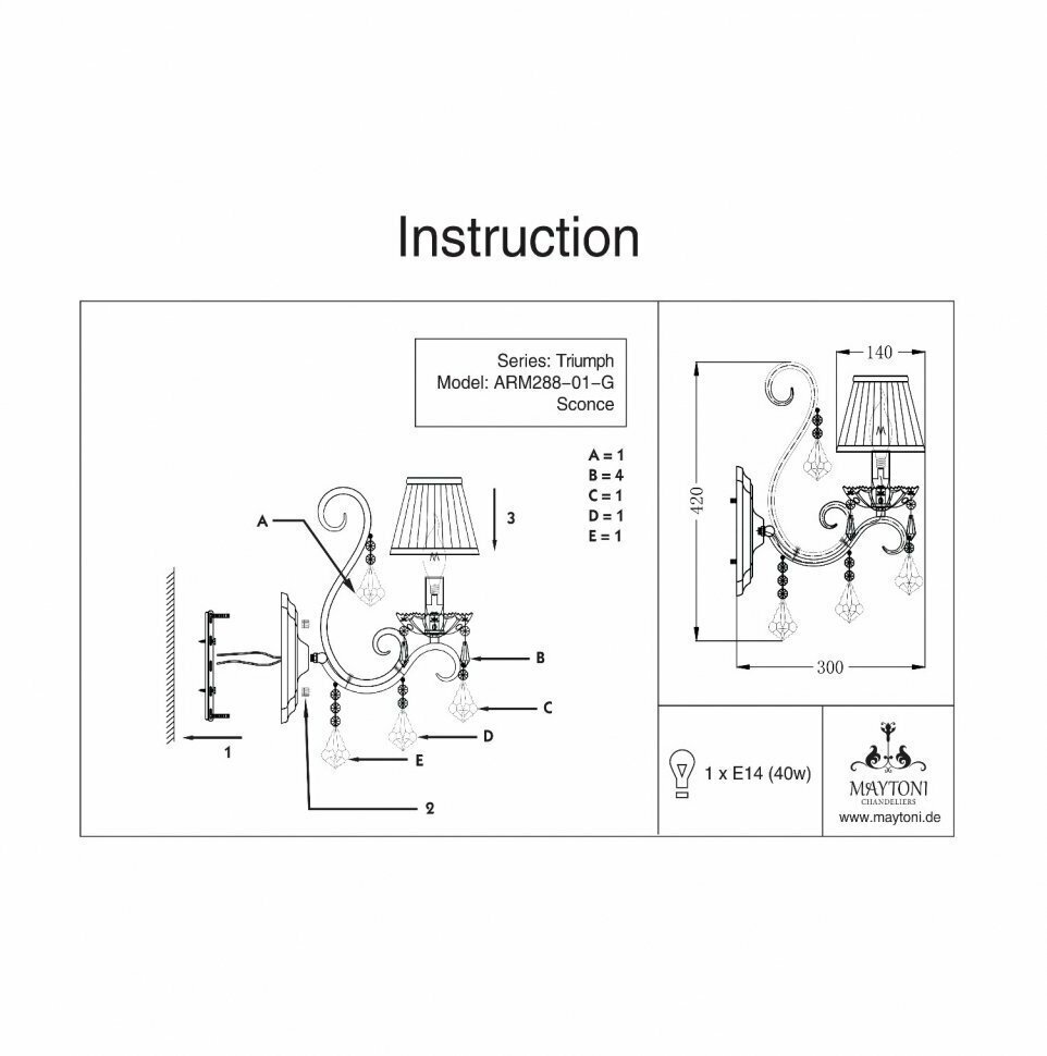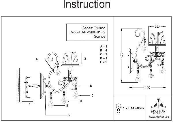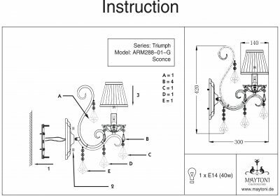 Это бра — изделие высочайшего качества, который будет служить в течении длительного срока. Замечательная модель в стиле «Классика», изготовленная под Немецкой маркой «Maytoni» принадлежит серии «Triumph». Гарантия производителя: 12 мес.