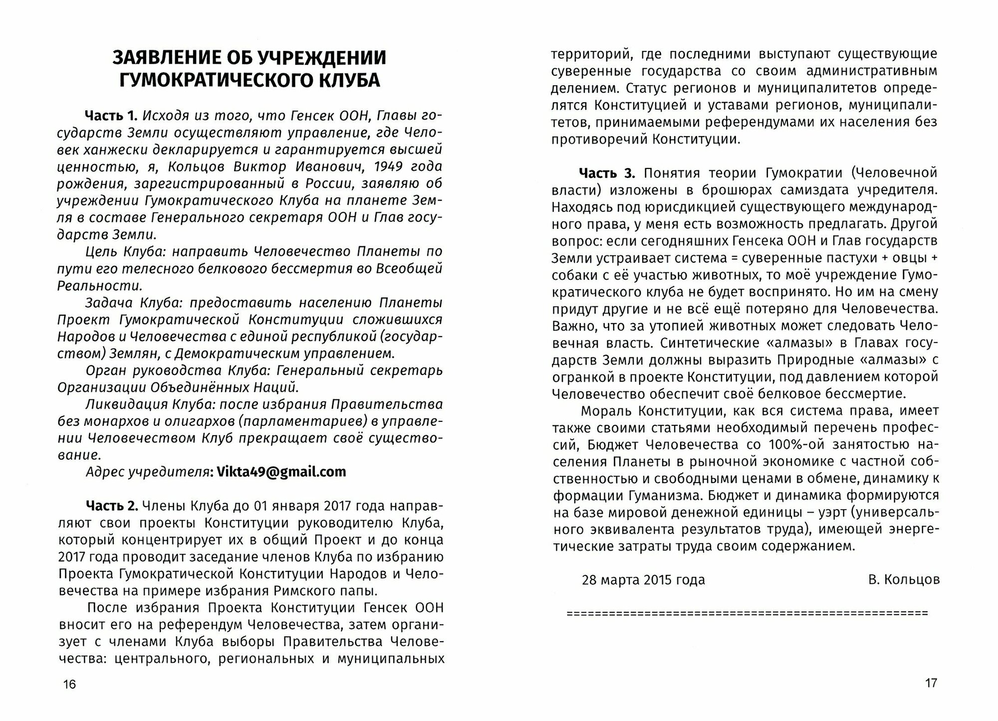 Эта книга использует опыт и знания Человечества, конструируя на них дух (мысль) автора в модели Гумократии (Гуманизм определяет власть или Человечная власть) с её формой политического сознания, предлагаемой к овеществлению. Те, кто не согласен с данной конструкцией, могут выразить лучший фундамент для жизни Человека.