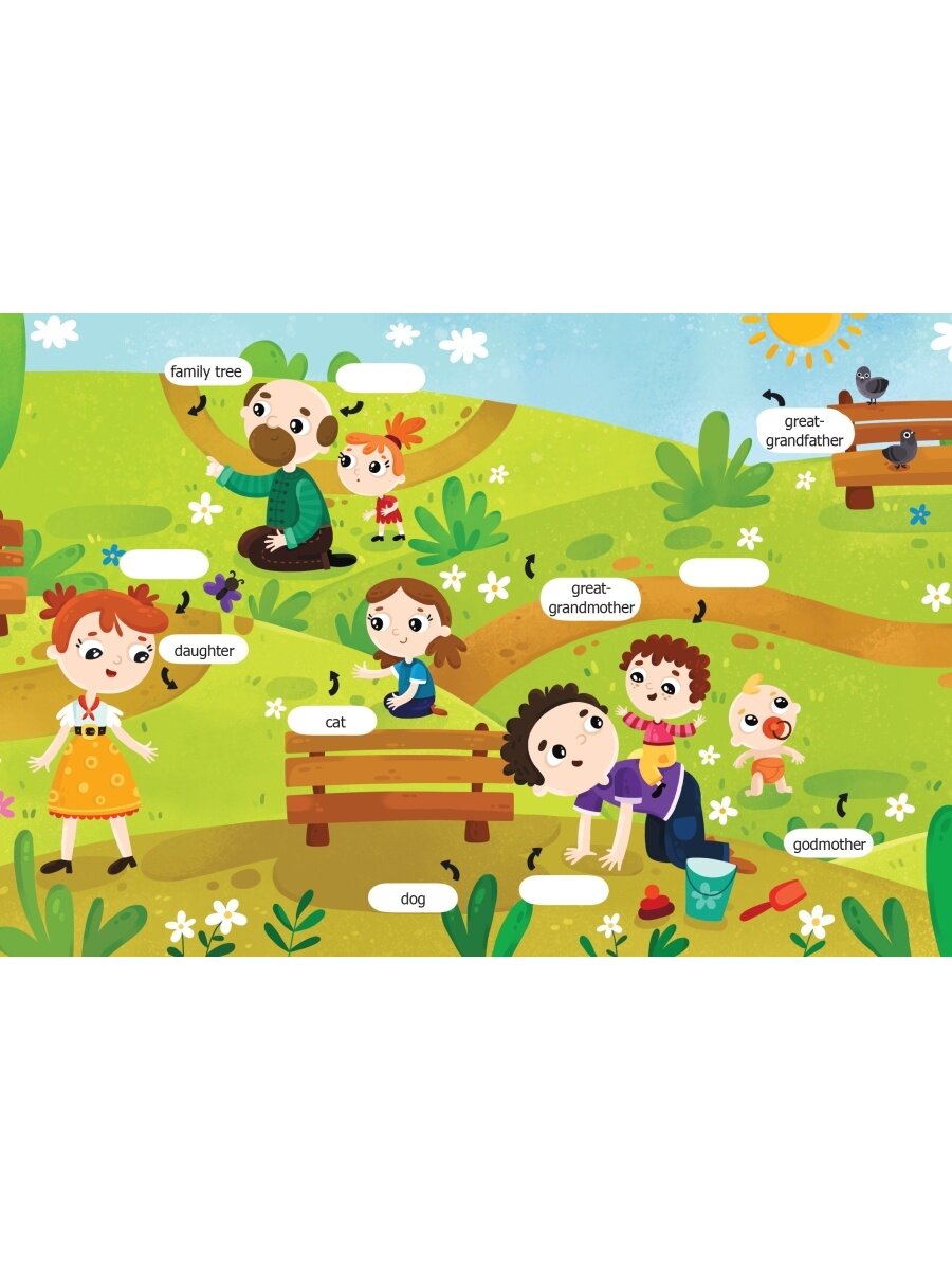 В словарике вы с малышом можете найти и прочитать новое слово, узнать его значение. А затем наклеить все недостающие слова на красивую панорамную картинку.