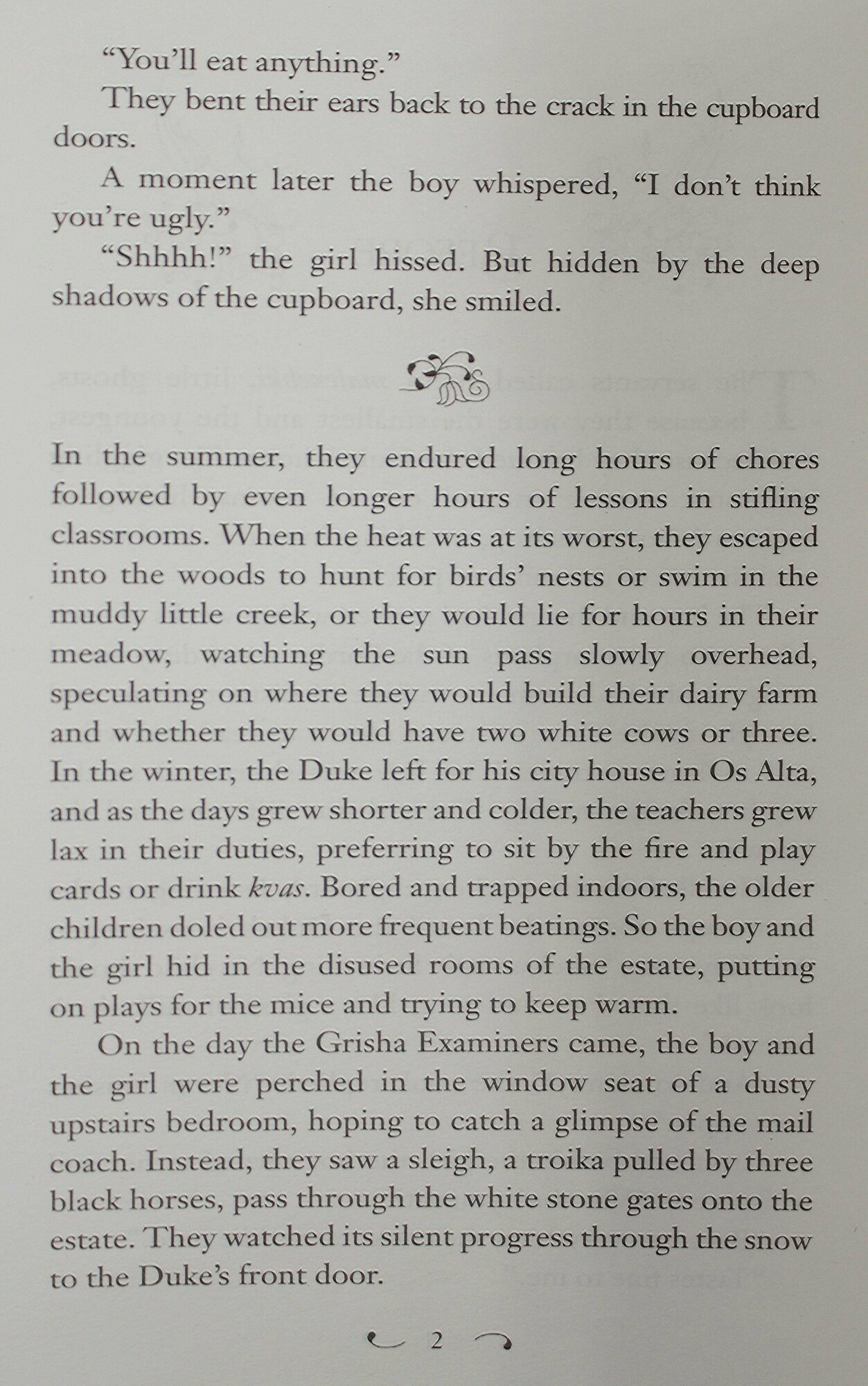 Про цю книжку з моменту виходу серіалу говорить увесь світ, тому я також вирішила приєднатися до загального обговорення. Ми тут маємо країну Равку розділену на дві частини загадковим каньйоном, в якому живуть монстри. Країна переживає не найкращі часи, адже Східна Равка прагне від'єднатися (цікаво, Лі Бардуго аж настільки надихнулася історією царської Росії, що вирішила таким чином згадати і про Україну також?), постійно йде війна з сусідніми країнами, на утримання гришів і царя йде все більше коштів і ресурсів... Короче, країна чекає на мессію. І отримує його у вигляді 16-тирічної дівчини, тому, так, це знову історія про обраницю. Можна я не буду зупинятися на цій темі окремо? Бо оригінальністю вона не пахне від слова зовсім. До того ж, від авторки, яка так вдало обіграла весь той антураж, що супроводжує наших сусідів, я очікувала й якогось цікавого підходу до цього кліше. Загалом, мої враження можна викласти в вислів типу "В принципі, добре, але читати далі я не буду", якщо я й буду продовжувати знайомитися з історією Аліни Старкової, то лише через серіал.