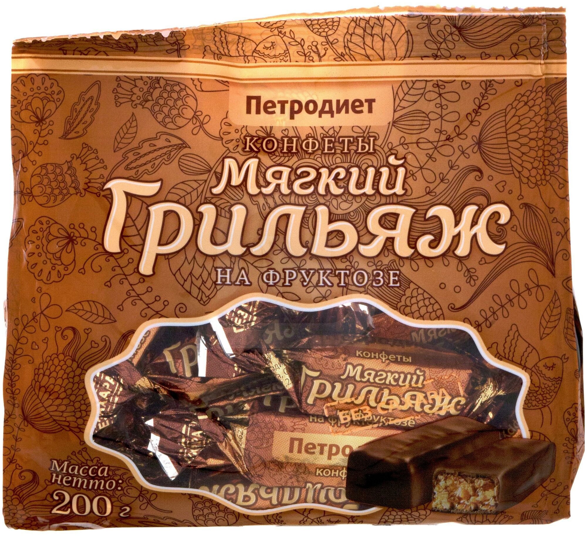 Конфеты Петродиет Мягкий Грильяж на фруктозе 200г