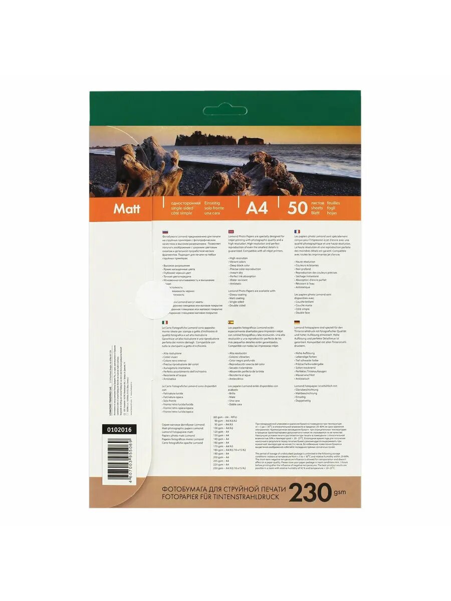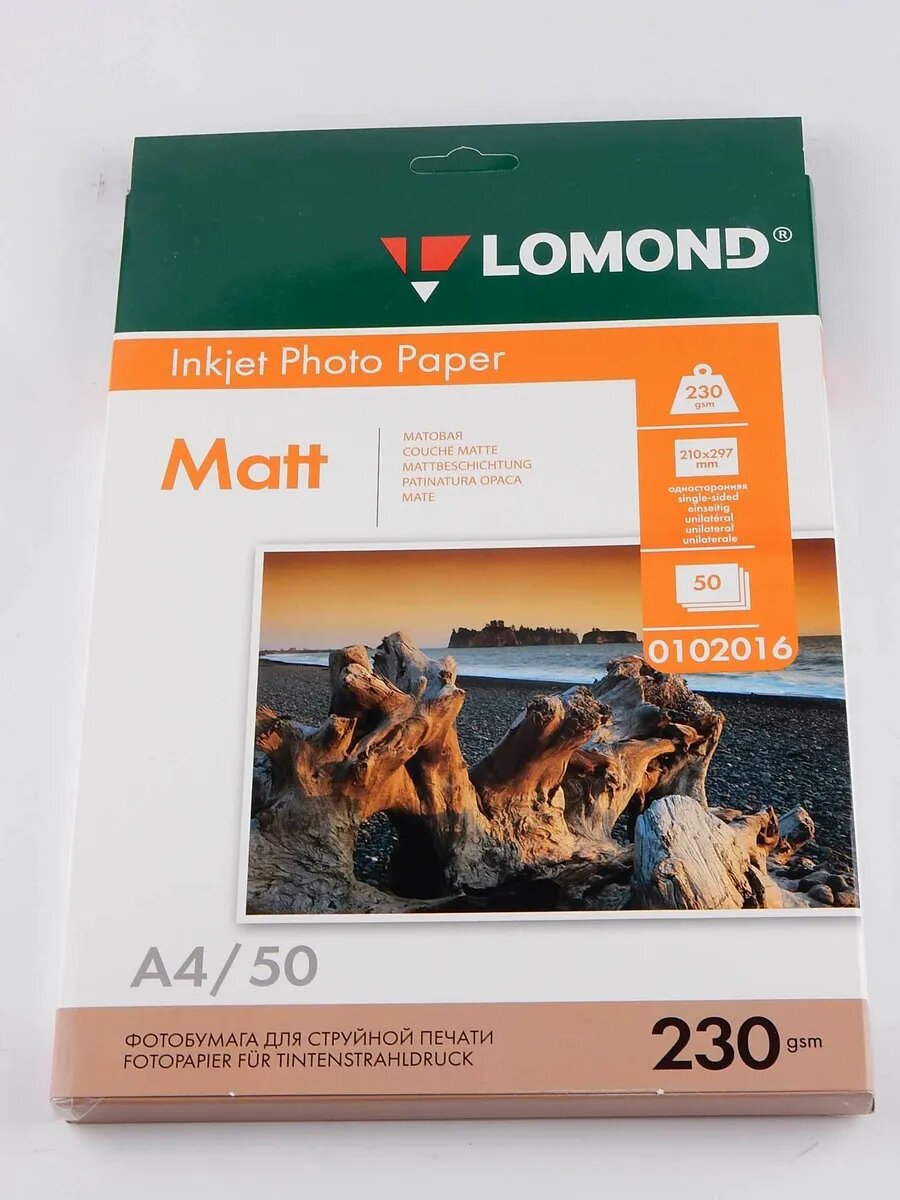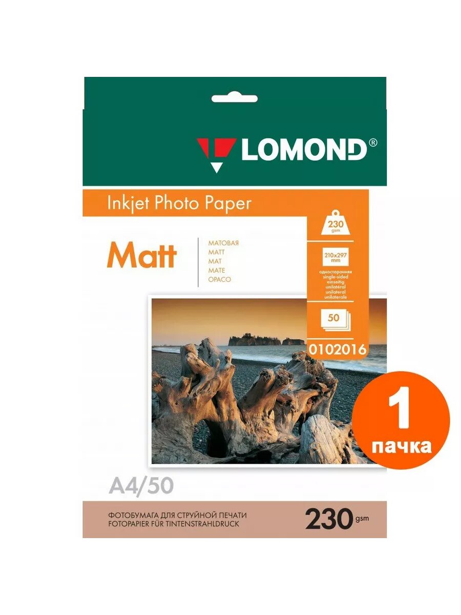 0102016 бумага LOMOND (A4 230гр 50л) Photo Матовая одностор. A4, матовая, 230 г/м², 50 листов