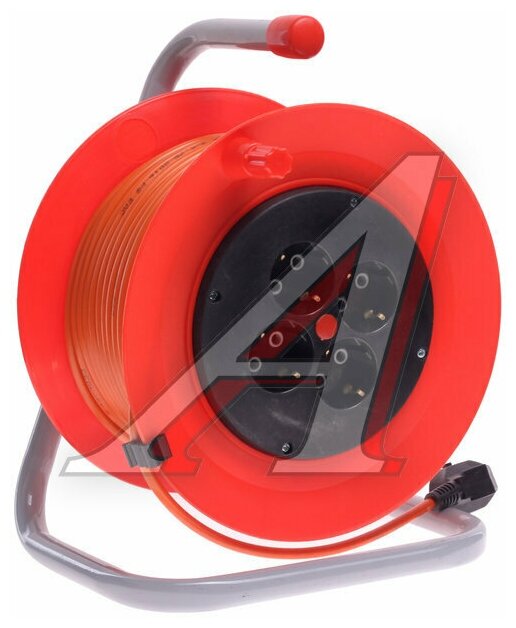 Удлинитель силовой на катушке LUX К4-Е-30 ПВС 3x0.75 30м, 10А, 4 встр. розетки с з/к
