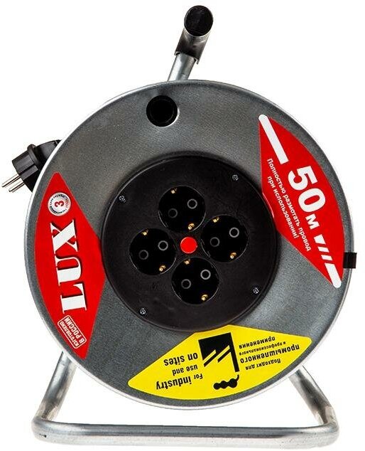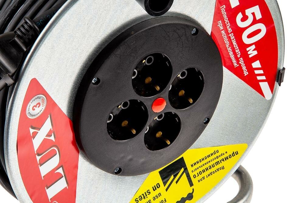 Удлинитель силовой LUX К4-Е-50-44150 3x1.5кв.мм 4розет. 50м КГ 16A метал.катушка черный