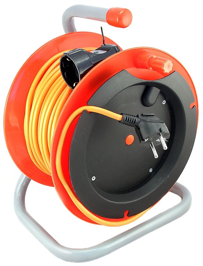 Силовой удлинитель на катушке К1-Е-40 ПВС 3x0.75 40м с заземлением LUX 4606400417613 является практичным и безопасным приспособлением для присоединения электрических приборов, которые расположены на удалении от основного источника сети. Провод ПВС 3х0,75 расположен на пластиковой катушке. Изделие отличается устойчивостью, благодаря металлической треноге с рукояткой для удержания удлинителя. На лицевой панели расположена ручка для сматывания провода после использования.