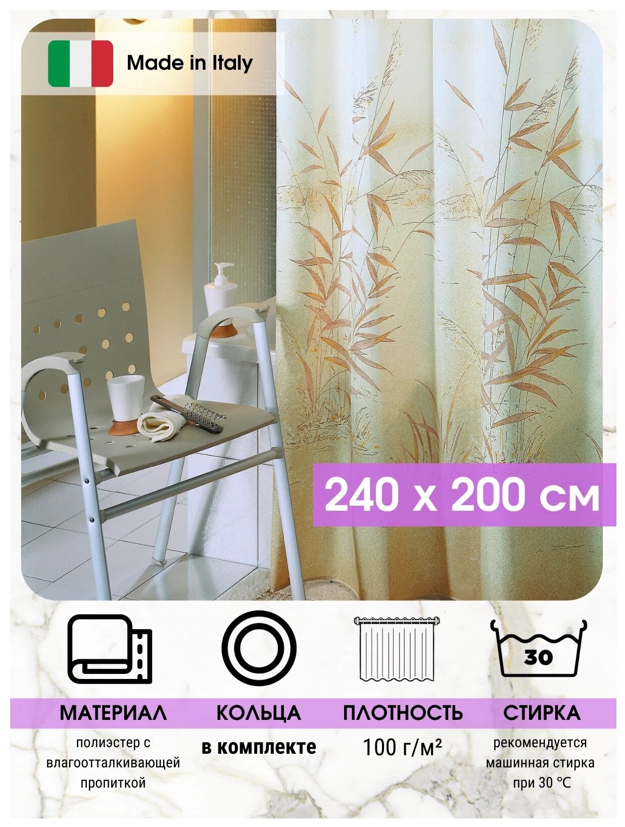 Модель: Штора для ванн BACCHETTA CANNETTO 240х200 см