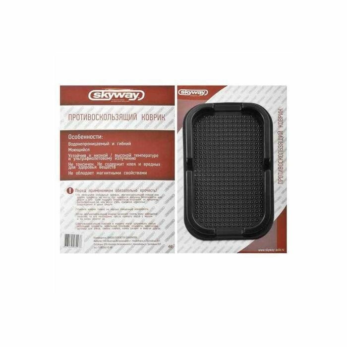 Коврик панели противоскользящий SKYWAY 150*98мм Черный-удерживает любые небольшие предметы: мобильные телефоны, планшеты, навигаторы, футляры для очков, связки ключей и многое другое.Особенности:Водонепроницаемый и гибкийМоющийсяУстойчив к низкой/высокой температуре и ультрафиолетовому излучениюНе токсичен, не содержит клея и вредных для здоровья веществНе обладает магнитными свойствамиКрепится только на хорошо очищенную поверхностьПри потере клеящих свойств достаточно промыть водой с мылом
