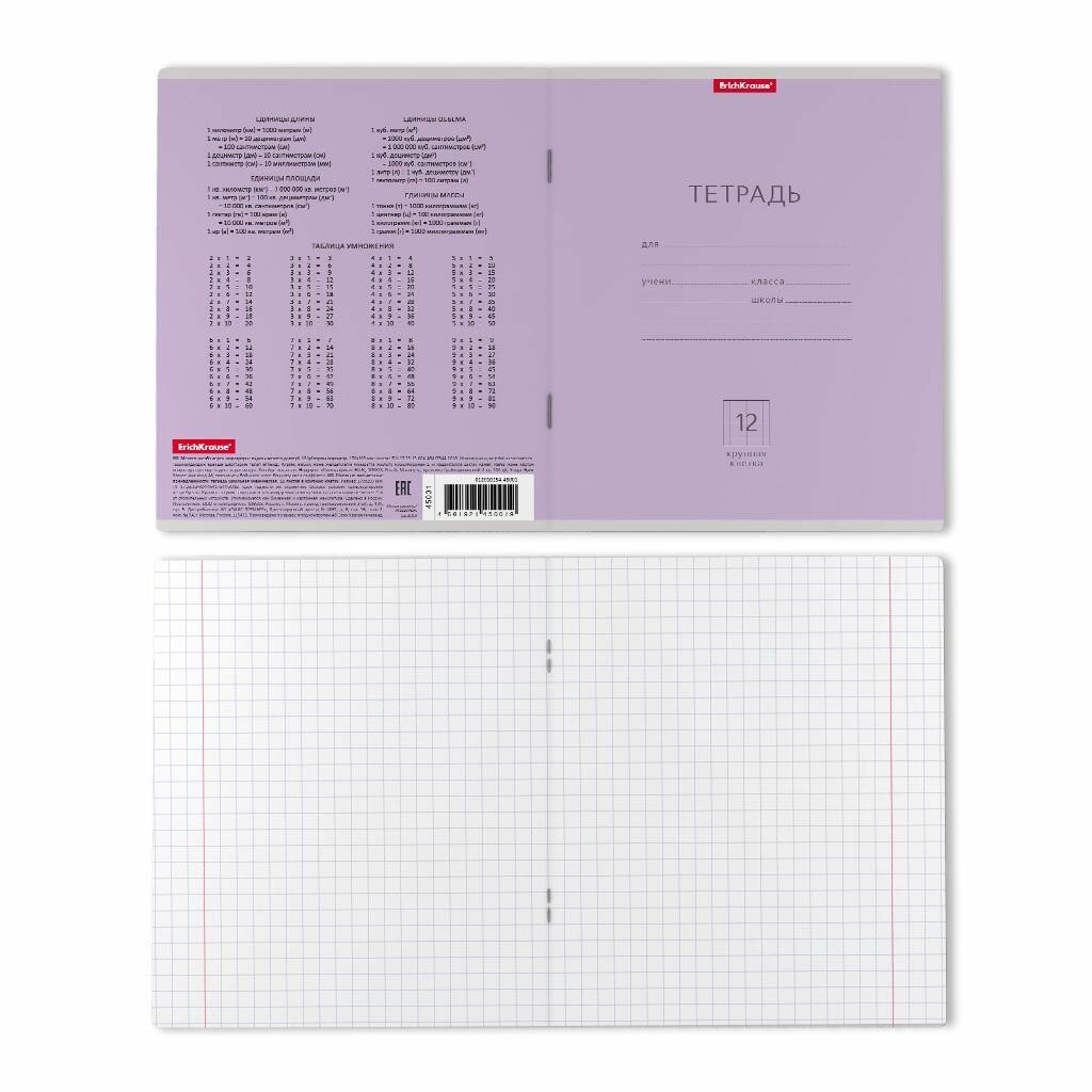 Тетрадь А5+ 12л крупная клетка Erich Krause школьная Классика фиолетовая (45001)