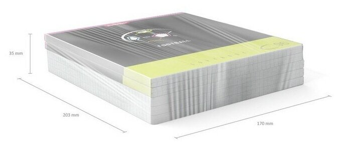 Тетрадь общая формата А5+ (170х203 мм). Обложка из высококачественного мелованного картона плотностью 190 г/м2. В блоке 96 листов в клетку с полями. Бумага офсетная плотностью 55 г/м2. Цвет линовки синий. Скругленные уголки обложки и блока. Тип скрепления - скоба. Тетради одного дизайна упакованы в термоусадочную пленку по 5 штук. Товар поставляется в нескольких вариантах дизайна без возможности выбора.