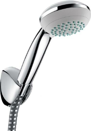 Hansgrohe - душевой гарнитур, состоящий из шланга, штанги и лейки. Струйные форсунки лейки снабжены эластичными силиконовыми вставками, благодаря чему загрязнения и известь удаляются одним движением руки. Технология AirPower обогащает капли воды воздухом, что делает их объемнее, легче и мягче. Чтобы переключить тип струи теперь достаточно чуть повернуть душевой диск.