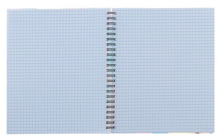 Тетрадь общая формата А5+ (170х205 мм). Обложка из высококачественного износостойкого глянцевого пластика с фактурой «диагональ». Эффектный стильный дизайн выполнен офсетной печатью яркими красками. В блоке 80 листов в клетку. Бумага офсетная плотностью 55 г/м2. Цвет линовки - синий. Скругленные уголки обложки. Обложка фиксируется прочной эластичной резинкой. Тип скрепления - спираль.