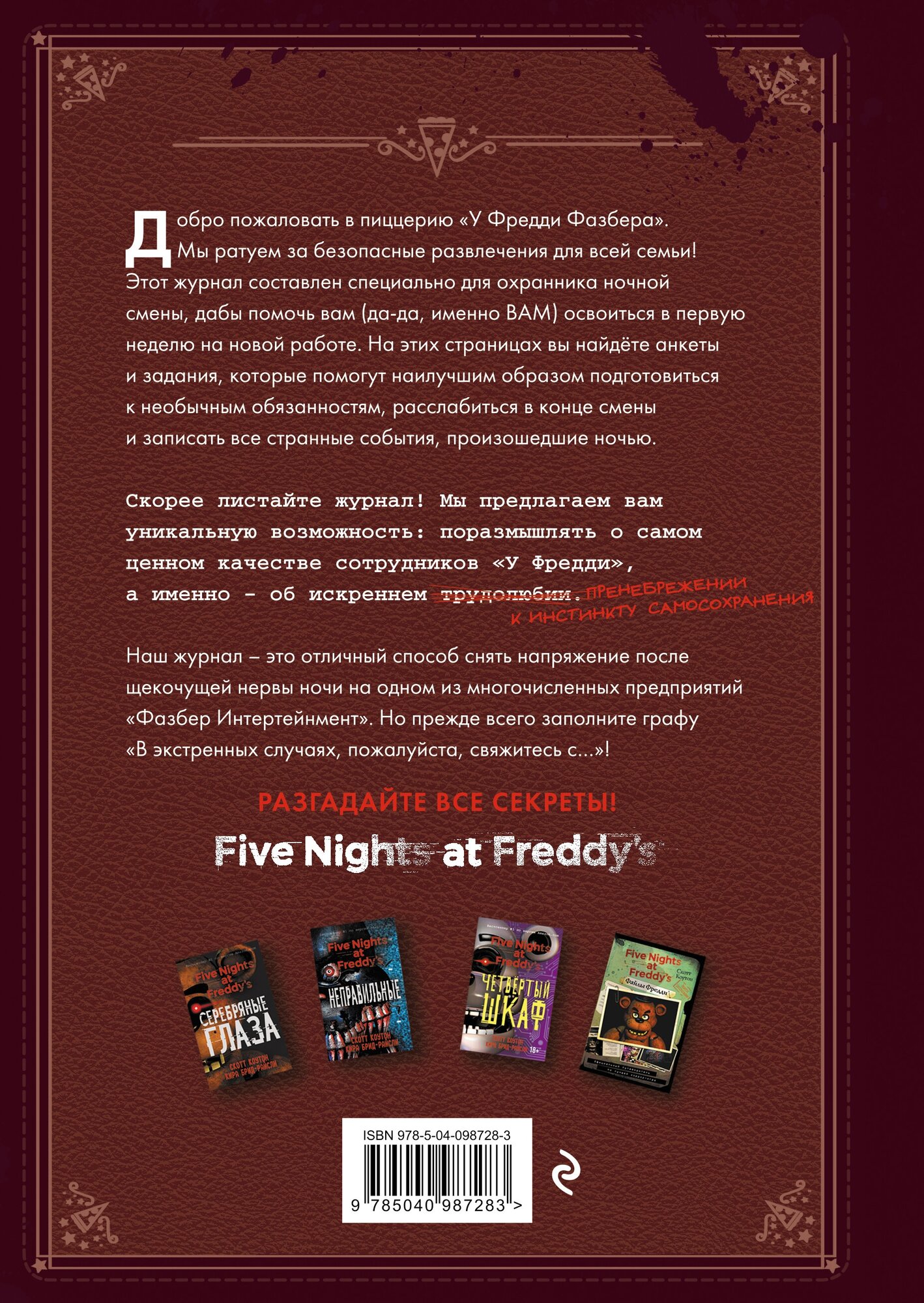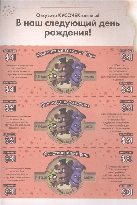 Тесты, опросы, новая информация о главной локации компьютерной игры - пиццерии "У Фредди Фазбера", а также тайное послание, зашифрованное на страницах книги, будоражат воображение!