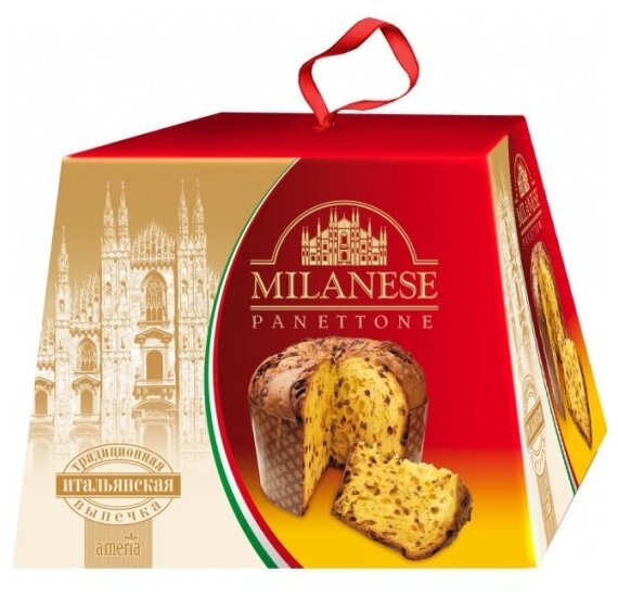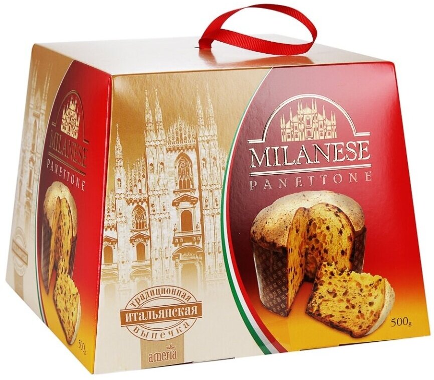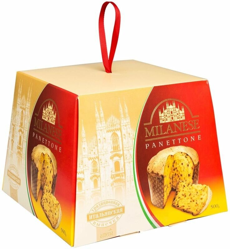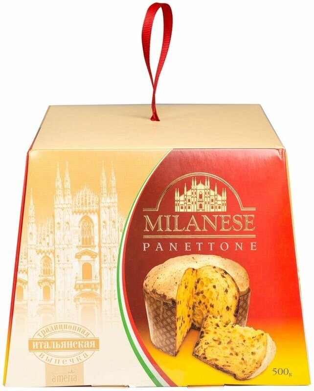 Кулич Milanese Пасхальный с цукатами и изюмом 500г - это традиционная итальянская выпечка из дрожжевого теста, которая производится на Курчатовском хлебокомбинате по мотивам классического миланского рецепта панеттоне. Panettone - в переводе с итальянского "большой кусок хлеба". В отличие от русских куличей, его принято выпекать к Рождеству. Эта традиция зародилась много веков назад, когда в обычный пшеничный хлеб стали добавлять мед и сухофрукты в честь праздника. Кулич упакован в подарочный картонный короб с ленточкой-петелькой. Он станет отличным подарком к Пасхе и украшением Пасхального застолья.