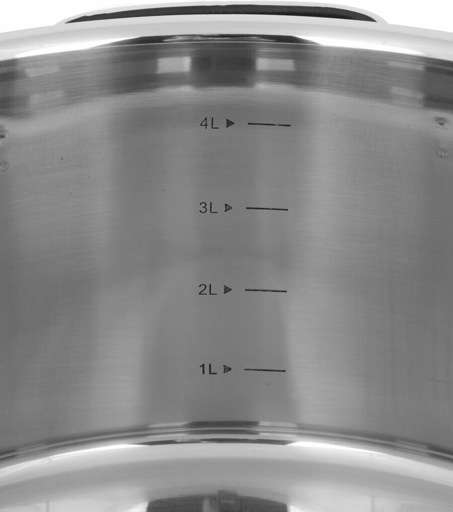 Кастрюля Nadoba "Dona" изготовлена из высококачественной нержавеющей стали 18/10. Прочное трехслойное капсульное дно позволяет равномерно распределять тепло по всей площади кастрюли. Для удобства слива у кастрюли предусмотрен встроенный дуршлаг в крышке и носики на корпусе. Кастрюля снабжена удобными ненагревающимися ручками со вставками из силикона. Отсутствие заклепок на ручках обеспечивает долговечность в эксплуатации и простоту в уходе и мытье. Внутри кастрюли нанесена маркировка литража для удобства в использовании. Кастрюля снабжена крышкой из термостойкого закаленного стекла.