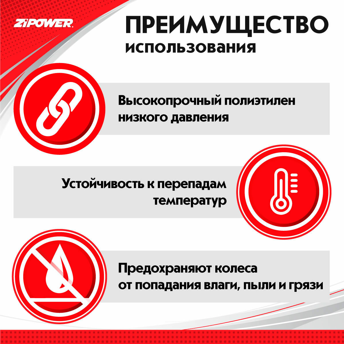 Пакеты изготовлены из высокопрочного полиэтилена низкого давления (ПНД), по этому они вполне способны выдержать вес колес и не порвутся при их переноске. В них удобно хранить колеса до следующей смены сезона. Пакеты устойчивы к перепадам температур и предохраняют колеса от попадания влаги, пыли и грязи - это важно для тех автомобилистов, кто хранит комплект колес в гараже или на балконе.