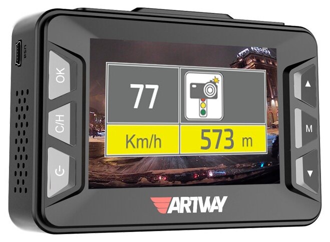 Удобство использования!Подача питания производится через кронштейн — не требуется подключение проводов при каждом использовании. Моментальная установка или снятие устройства. Никаких лишних движений!Компактные размеры! — это самое компактное combo 3 в 1 на магнитном кронштейне в мире! Размеры корпуса составляют всего: 80 х 54 мм. Устройство Artway не загораживает обзор водителя, занимает совсем немного места за зеркалом заднего вида и больше напоминает видеорегистратор. Однако, это полноценное комбо-устройство, которое выполняет функции съемки, детектирования радарных комплексов и оповещения по базе камер GPS! Надежное быстросъемное магнитное крепление!Неодимовый магнит — сильнейший среди всех существующих в мире постоянных магнитов. Он имеет высокую мощность притяжения и устойчив к размагничиванию, что обеспечивает надежное и безопасное крепление устройства. GPS — информатор GPS-информатор является расширенной функцией GPS -модуля, он не только накладывает GPS — координаты и скорость на видеозапись, но и оповещает водителя о приближении к радарным комплексам, в том числе к малошумным радарам и системам контроля средней скорости, информирует о расстоянии до них, вычисляет и контролирует среднюю скорость движения автомобиля на участке контроля средней скорости (например, «Автодория»), предупреждая о ее превышении.