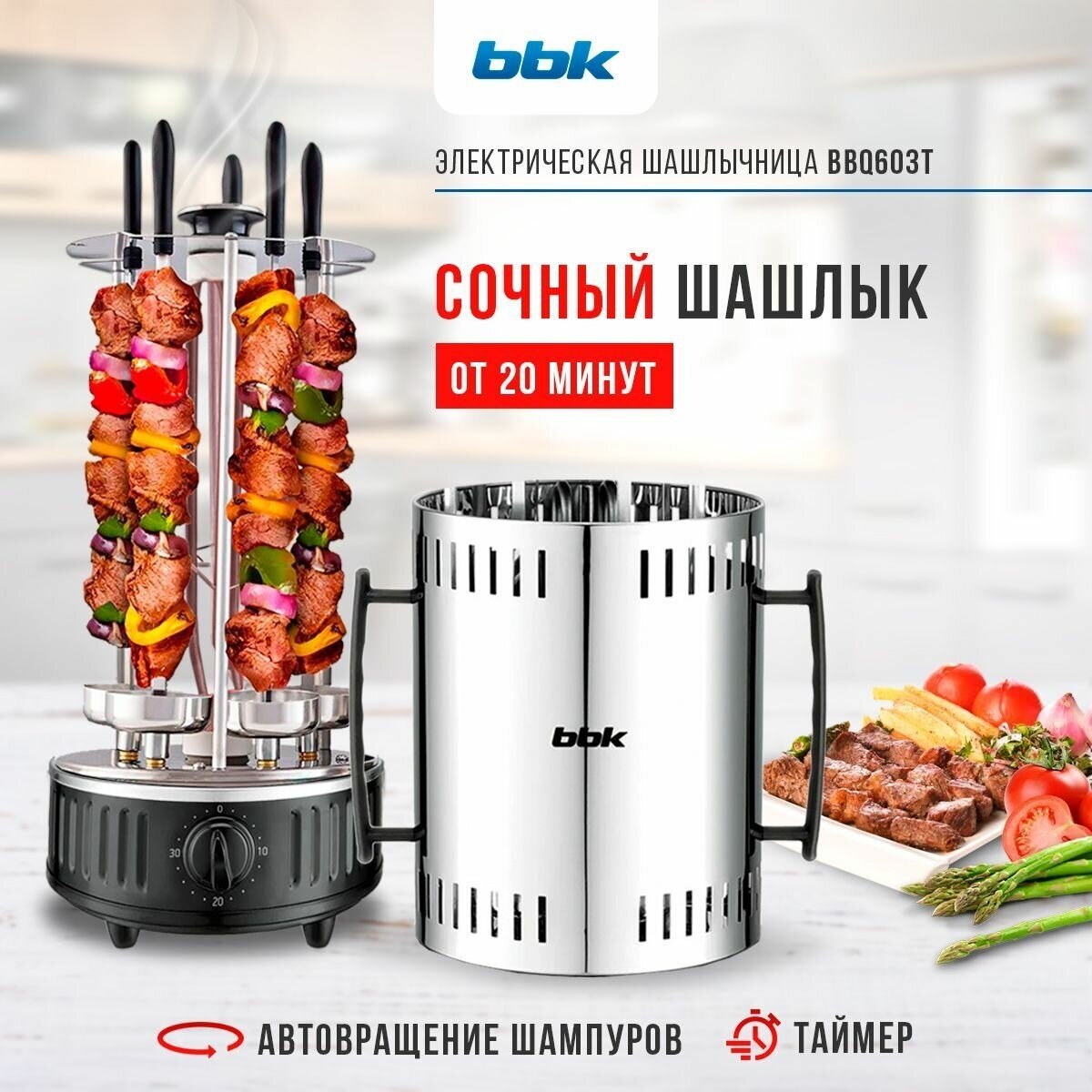 Шашлычница электрическая BBK 1000Вт черный/серебристый BBQ603T