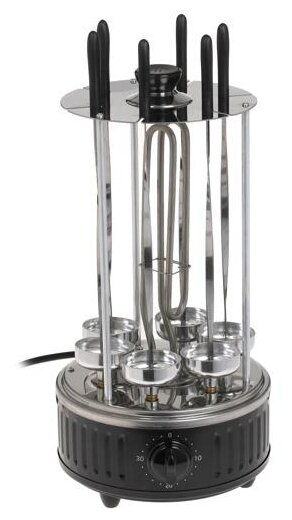 | Прочие особенности и свойства | Количество вращающихся шампуров 6,Тип нагревательного элемента:ТЭН из нержавеющей стали,Таймер:на 30 минут со звуковым сигналом,Дополнительные функции |