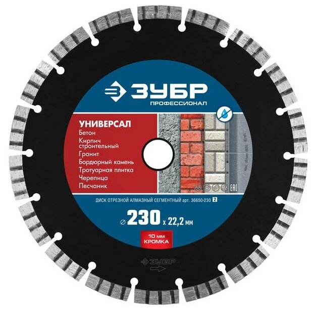 Алмазный диск ЗУБР по камню 230мм 36650-230_Z01