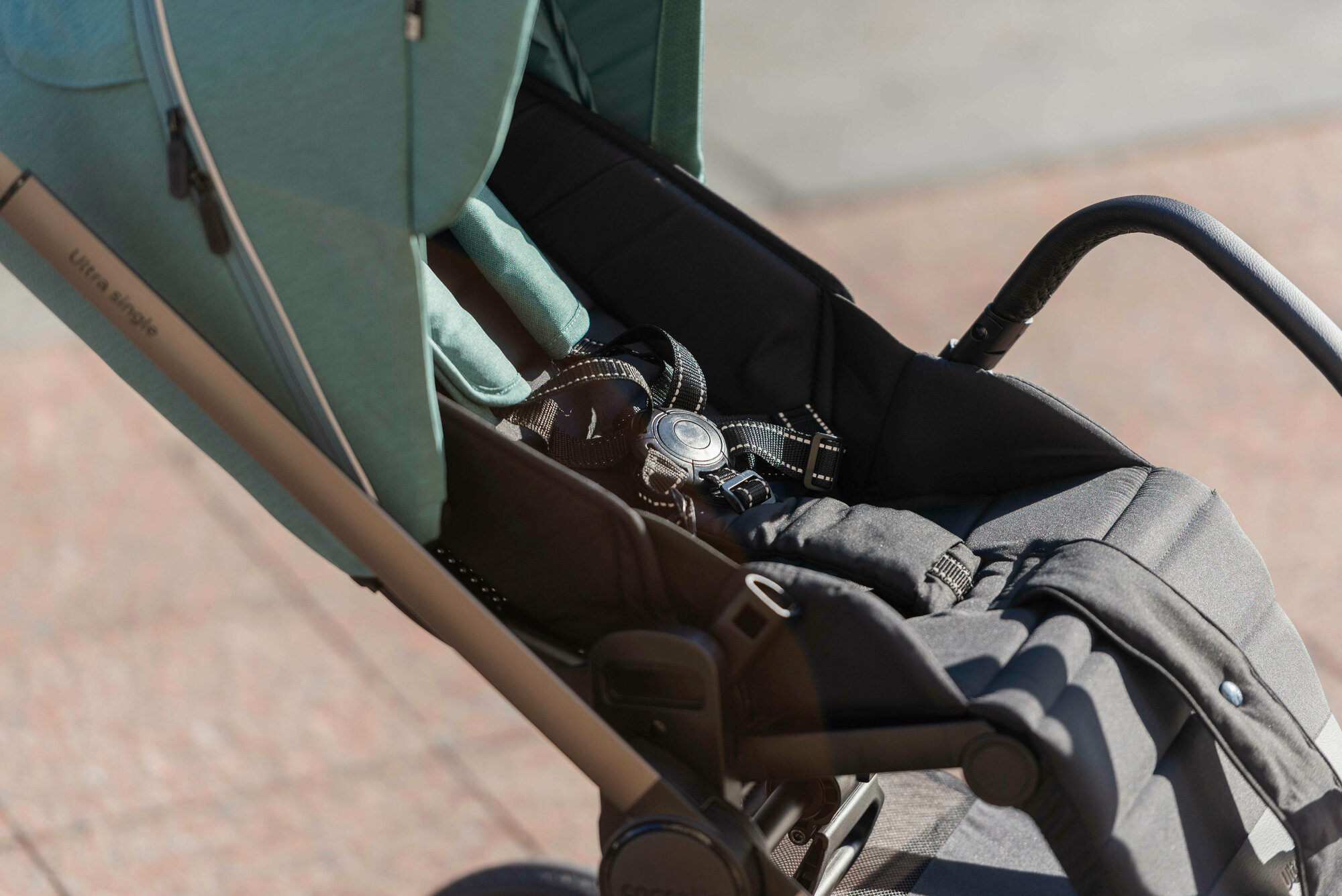 На легкой раме размещено 2 сиденья с независимыми системами регулировки подножек, капюшонов и спинок. Поэтому один малыш может лечь отдохнуть, а второй осматриваться по сторонам.