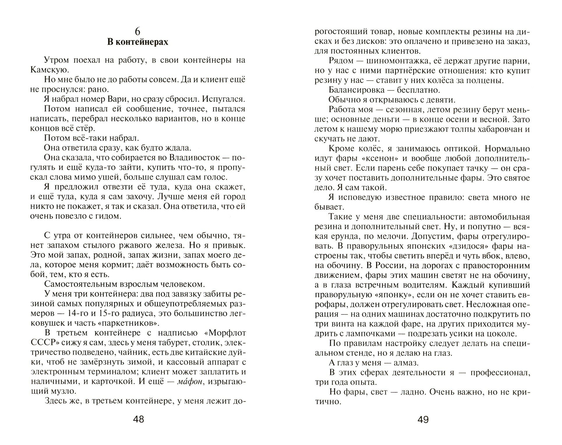Такую дрянь не читал уже давно!! Купил по одной причине, живу в Хабаровске и Владивосток город совсем не чужой и очень любимый. Но роман вообще не о чем, на уровне сочинения «Как я провел лето» классе в 5-6. Единственное к чему претензий нет- это географические описания Владивостока, но это вроде не путеводитель, а вроде как роман. Но очень, очень плохой.