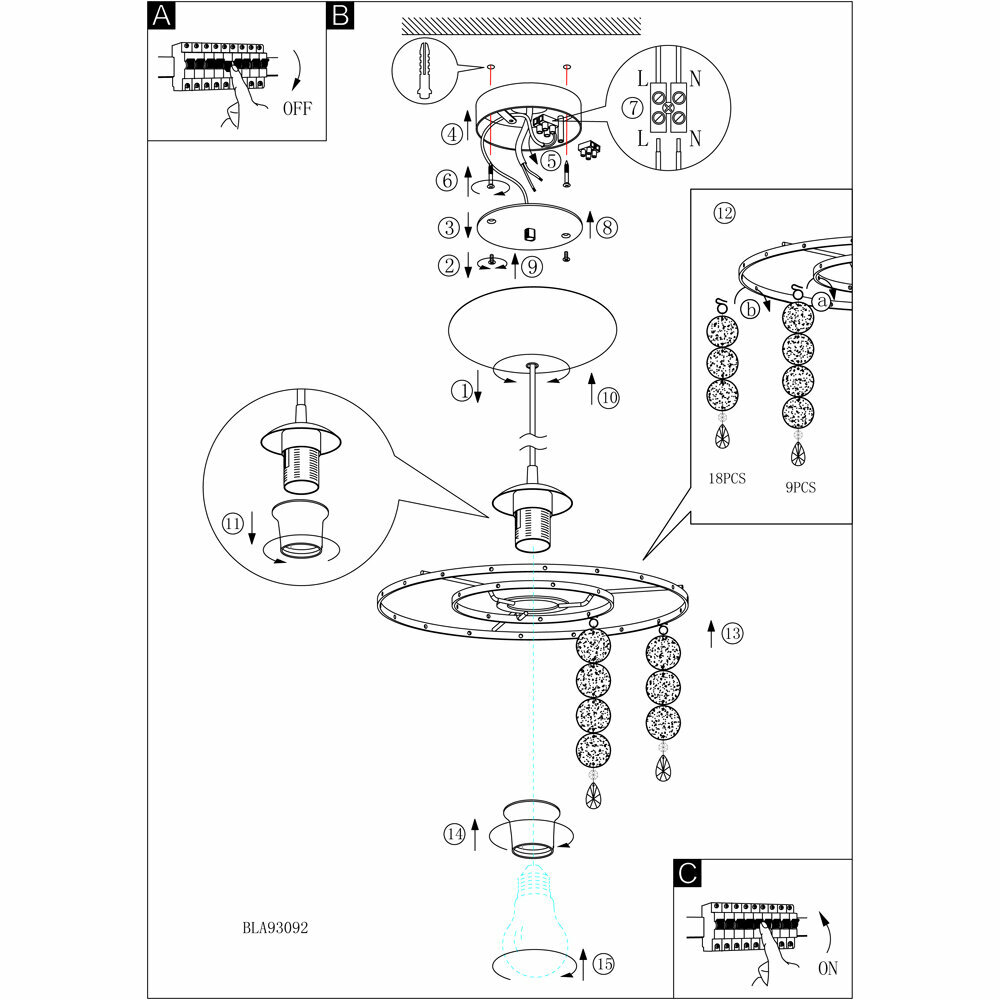 | Место монтажа | На потолок |