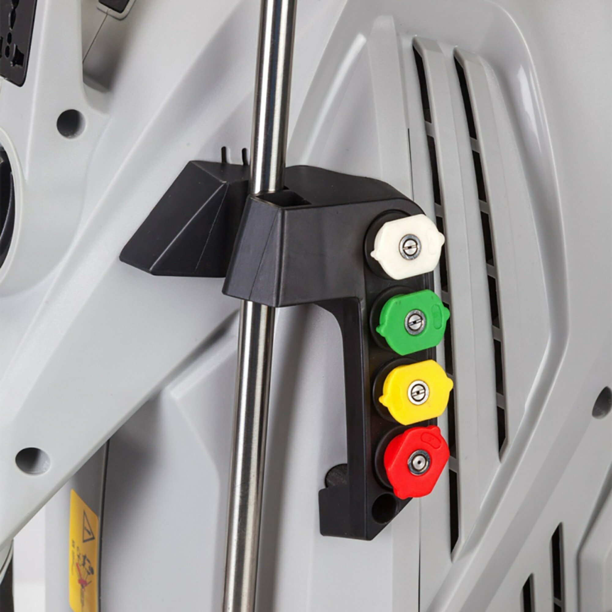 | Оснащение | фильтр,игла для прочистки,пистолет-распылитель,шланг высокого давления,сменные форсунки,телескопическая ручка,колеса |