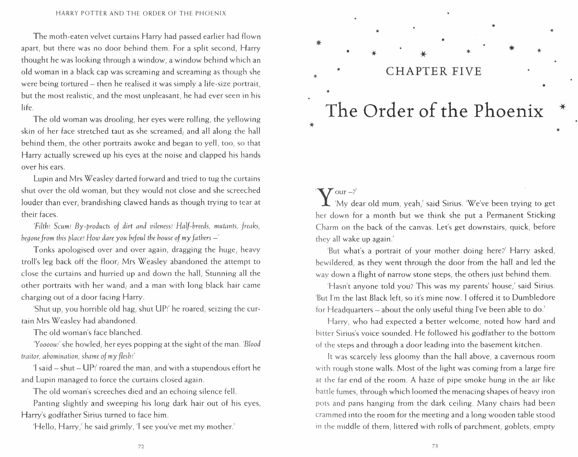 Dark times have come to Hogwarts. After the Dementors' attack on his cousin Dudley, Harry Potter knows that Voldemort will stop at nothing to find him. There are many who deny the Dark Lord's return, but Harry is not alone: a secret order gathers at Grimmauld Place to fight against the Dark forces. Harry must allow Professor Snape to teach him how to protect himself from Voldemort's savage assaults on his mind. But they are growing stronger by the day and Harry is running out of time.