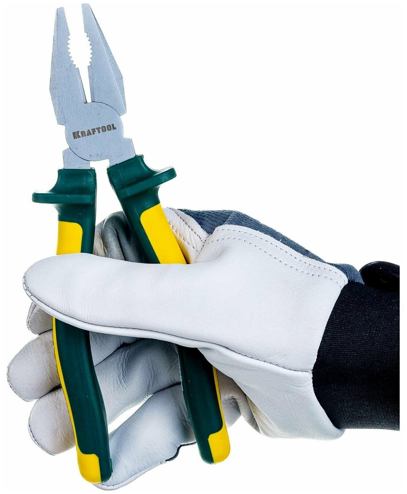 Комбинированные плоскогубцы KRAFTOOL 200 мм _z01, прочный и удобный в применении ручной инструмент для выполнения слесарных работ. Представляет собой сочетание маслобензостойких ручек с упорами для ладоней, а также особо прочных губок из хромомолибденовой стали, закаленных токами высокой частоты индукционным методом до твердости 51-53 HRC. Шарнир инструмента имеет специальную конструкцию, которая препятствует возникновению люфтов и деформаций при частых и интенсивных нагрузках. Эксцентриковое шарнирное соединение высокой износостойкости. Хромированное покрытие для защиты от коррозии. Маслобензостойкие рукоятки для работы в агрессивных средах. Зоны захвата плоских и круглых деталей.