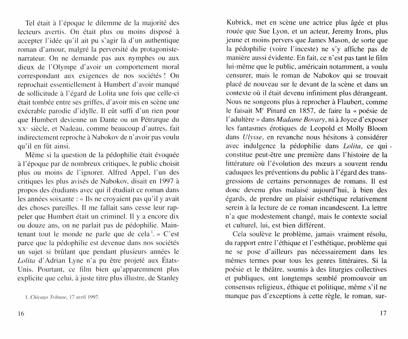Je pense aux aurochs et aux anges, au secret des pigments immuables, aux sonnets prophetiques, au refuge de l'art. Telle est la seule immortalite que toi et moi puissions partager, ma Lolita.