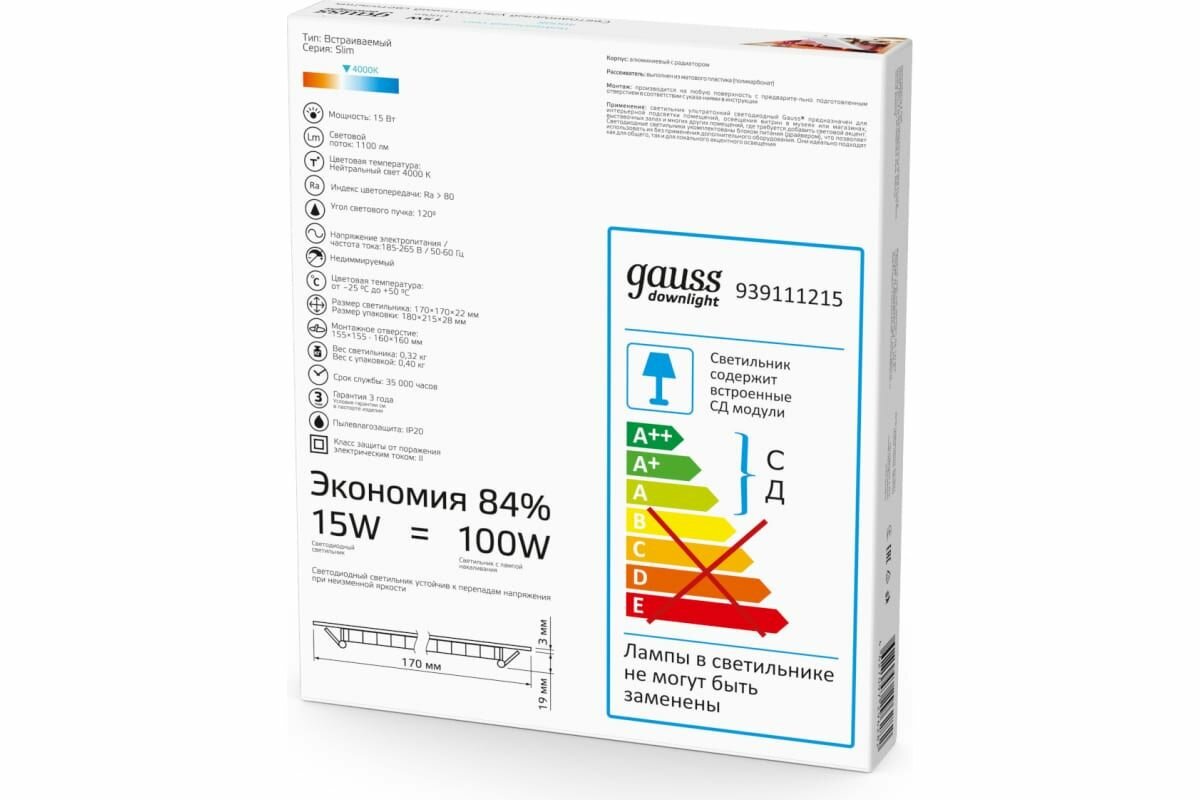 На сегодняшний день товар «Светодиодный встраиваемый светильник Gauss 940111215» можно купить с кешбеком в 1 магазине: xcom-shop