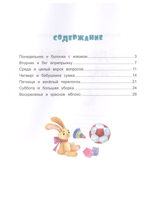 Оказывается, каждый день недели - это маленький человечек. Все они очень разные: Понедельник - любитель булочек с изюмом, Вторник - спортсмен, желающий угнаться за Понедельником, и стать первым