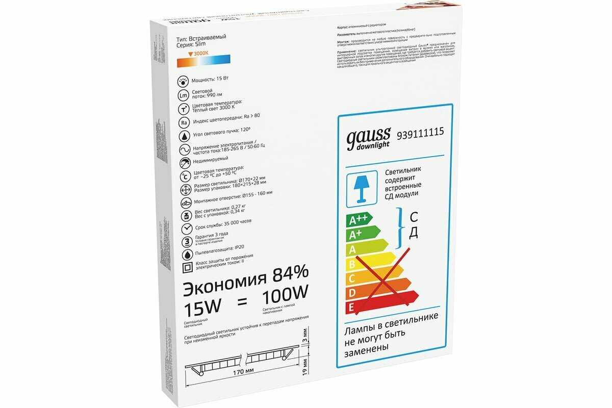 Сервис сравнения цен СкидкаГИД предлагает сравнить цены на товар «Светодиодный встраиваемый светильник Gauss 939111115»