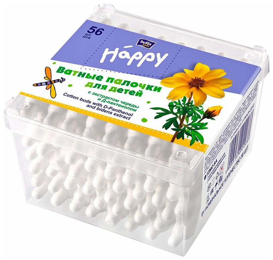 Ватные палочки с ограничителем с экстрактом череды Bella Baby Happy 56 шт (BB-081-P056-008)
