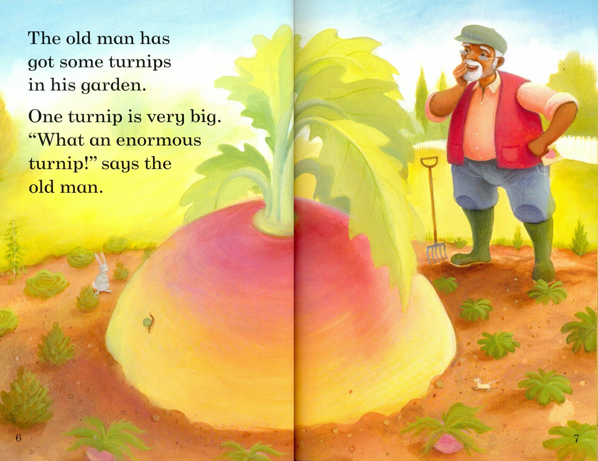 The Enormous Turnip, a Level 1 Reader, is Pre-A1 in the CEFR framework and supports YLE Starters exams. Short sentences contain a maximum of two clauses, using the present tense and some simple adjectives.