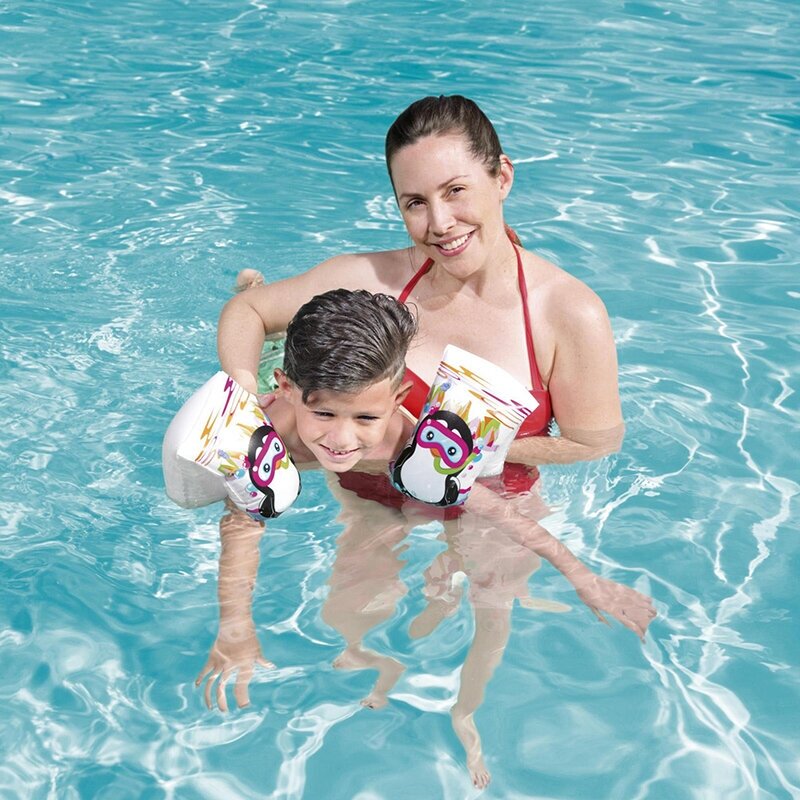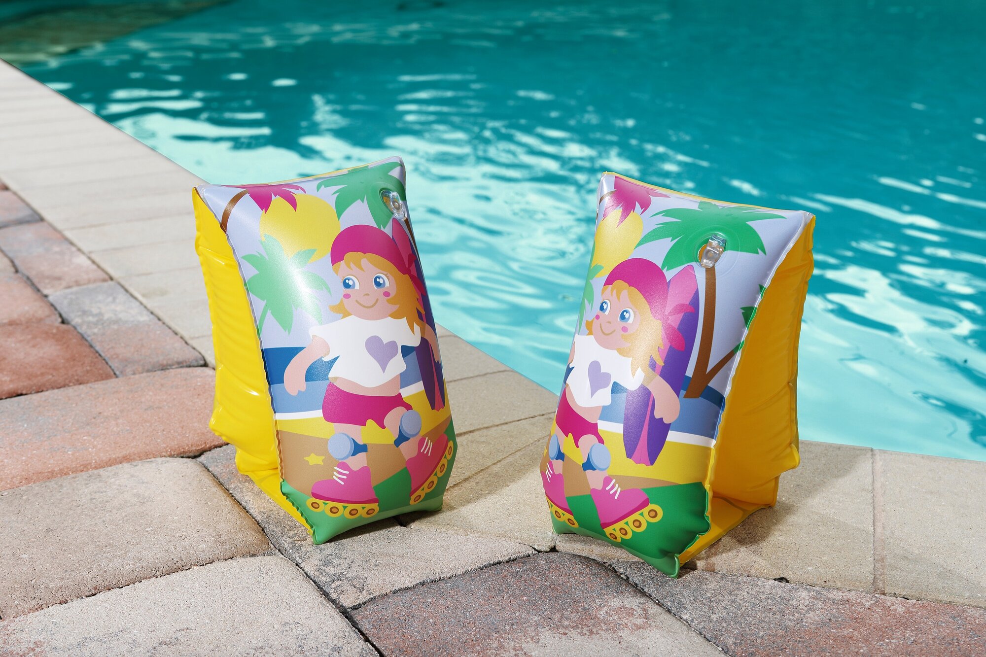 Яркие нарукавники, предназначенные для обучения малыша плаванию. С ними кроха станет более уверенным в воде и перестанет её бояться. Изделие имеет приятный дизайн, который обязательно понравится как девочкам, так и мальчикам. Прочный материал ПВХ, устойчивый к мелким повреждениям, ультрафиолетовым лучам, бензину и маслам, не подведёт малыша в самый ответственный момент. Такие нарукавники будут радовать вашу кроху не один сезон. Подарите ребёнку яркие эмоции!