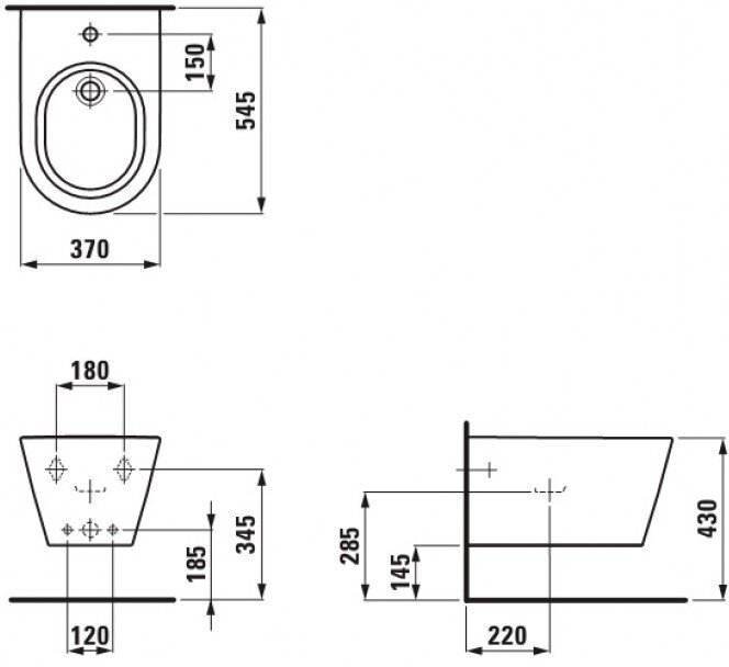 Подвесное биде с отверстием для смесителя. Размеры 37х54,5х29 см. Цвет: белый