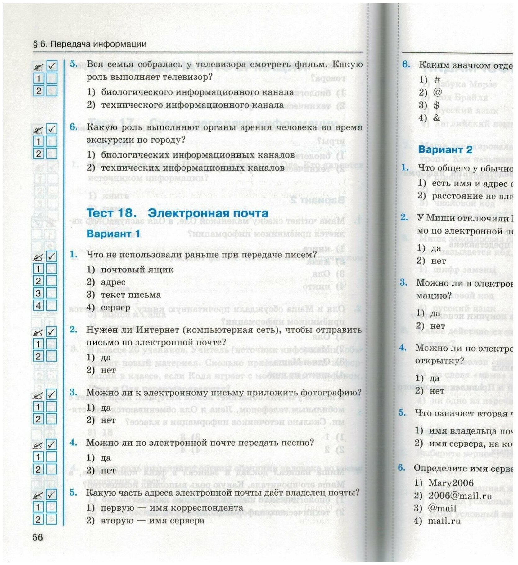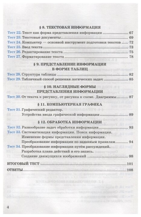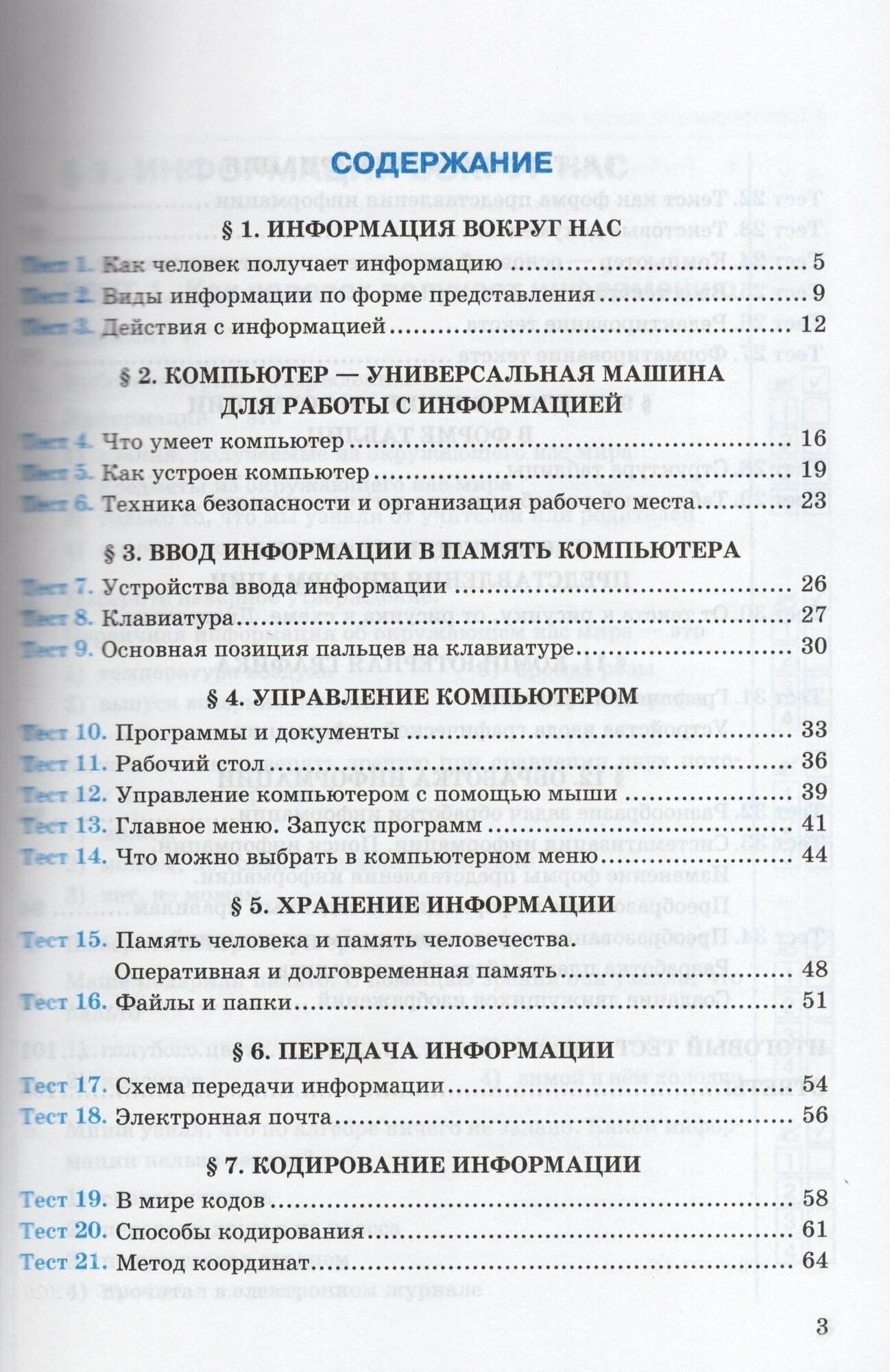 В пособии представлены тесты по информатике в двух вариантах к каждому параграфу учебника, а также итоговый тест в двух вариантах.