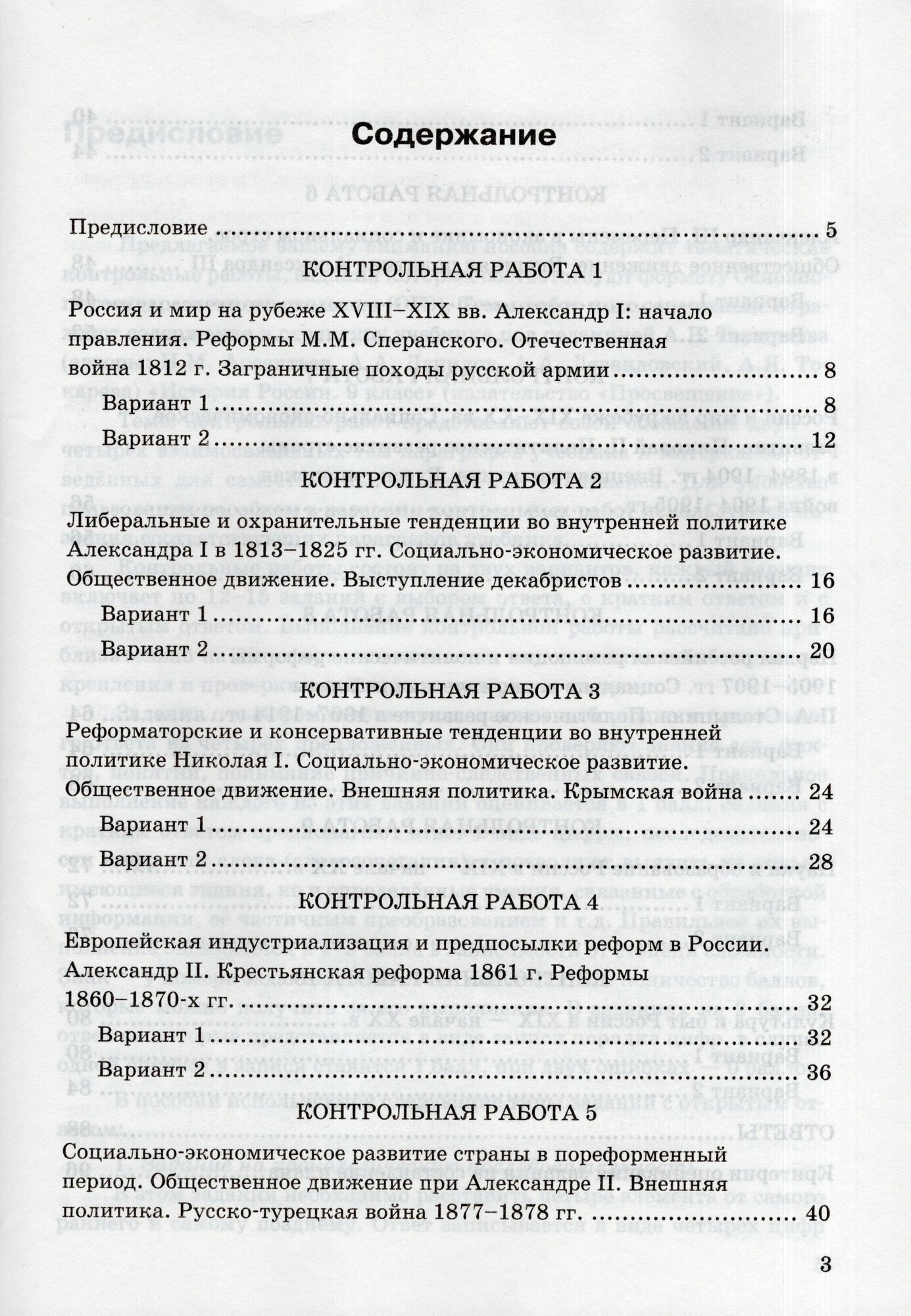 Пособие включает контрольные работы по истории России, которые соответствуют содержанию и структуре учебника "История России. 9 класс" под редакцией А. В. Торкунова (издательство "Просвещение"). Задания можно использовать для обучения и самоконтроля учащихся, проверки домашних заданий, текущего и итогового контроля, а также постепенной подготовки к ОГЭ. Ко всем заданиям даны ответы.